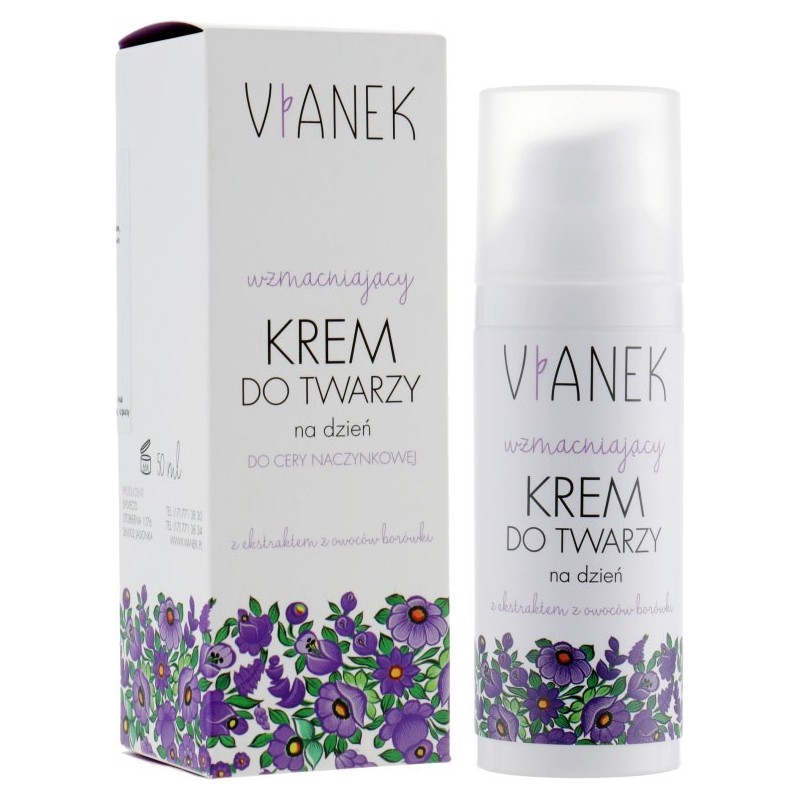Укрепляющий дневной крем для лица - предназначен для ежедневного ухода за чувствительной кожей и за кожей, склонной к куперозу. Содержит экстракт плодов брусники, обладающий противовоспалительным действием, ускоряющий заживление и укрепляющий сосуды. В состав также входит масло семян черной смородины, которое успокаивает раздражения, а зеленый пигмент выравнивает тон кожи и уменьшает заметность покраснений. Масло сладкого миндаля оказывает увлажняющее и разглаживающее действие и укрепляет липидный барьер кожи, а масло виноградных косточек обладает успокаивающими и регенерирующими свойствами.