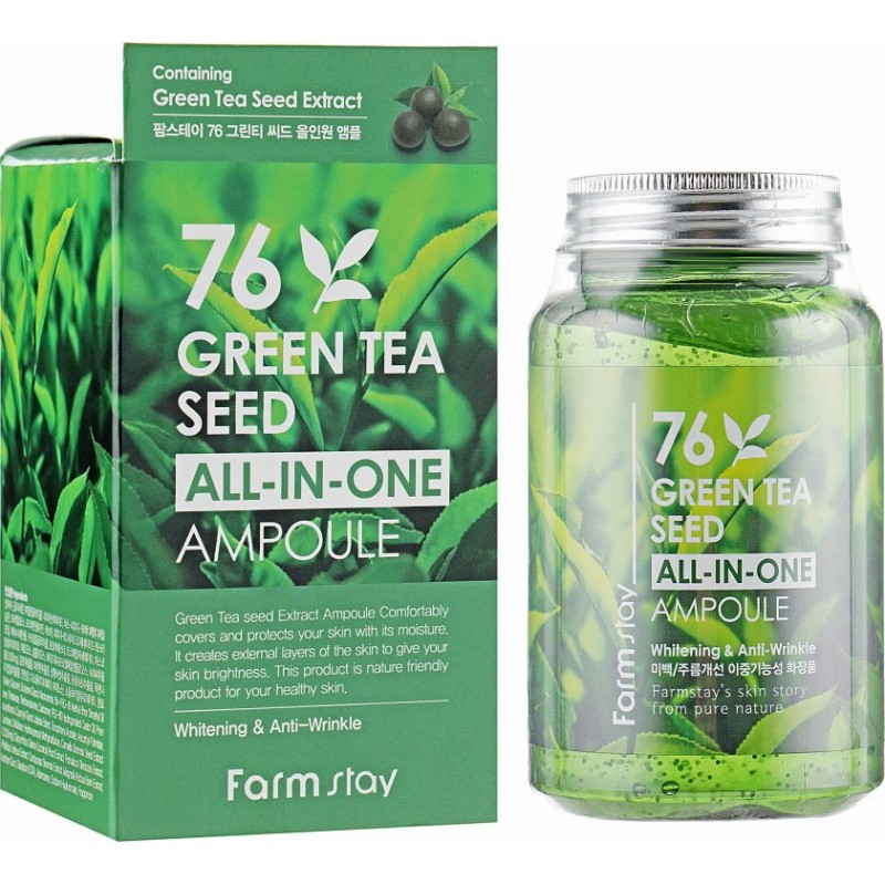 Многофункциональная сыворотка для лица с экстрактом семян зеленого чая. Она активно увлажняет кожу, обогащает её витаминами, заряжает энергией, улучшает цвет лица, придаёт ему матовость и ухоженный вид. Активные ингредиенты: Ниацинамид - стимулирует процессы регенерации, а также отбеливает кожу. Он препятствует скоплению меланина в клетках, что позволяет выровнять тон лица, устранить желтизну, тусклость, серость и пигментацию. Экстракт листьев зелёного чая - нейтрализует напор свободных радикалов кислорода, предотвращает окисление клеток и замедляет проявление возрастных изменений. Соль гиалуроновой кислоты - этот компонент выделяется из гиалуроновой кислоты и имеет очень маленькую молекулярную массу. Он может проникать в глубокие слои дермы, удерживать там влагу и оптимизировать гидробаланс на клеточном уровне. Экстракт корня солодки - корень солодки активно борется с болезнетворными проявлениями и помогает решить многие дерматологические проблемы. Экстракт портулака огородного - портулак помогает укрепить стенки сосудов, устранить патогенные бактерии, предотвратить появление купероза и других болезнетворных проявлений.